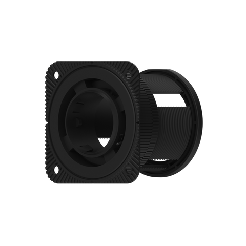The adjustable cored mounting plate is designed for direct installation into furniture with material thickness 0.25mm to 33.75mm. The mounting plate will accommodate any of the 22 System furniture Ø35mm devices.