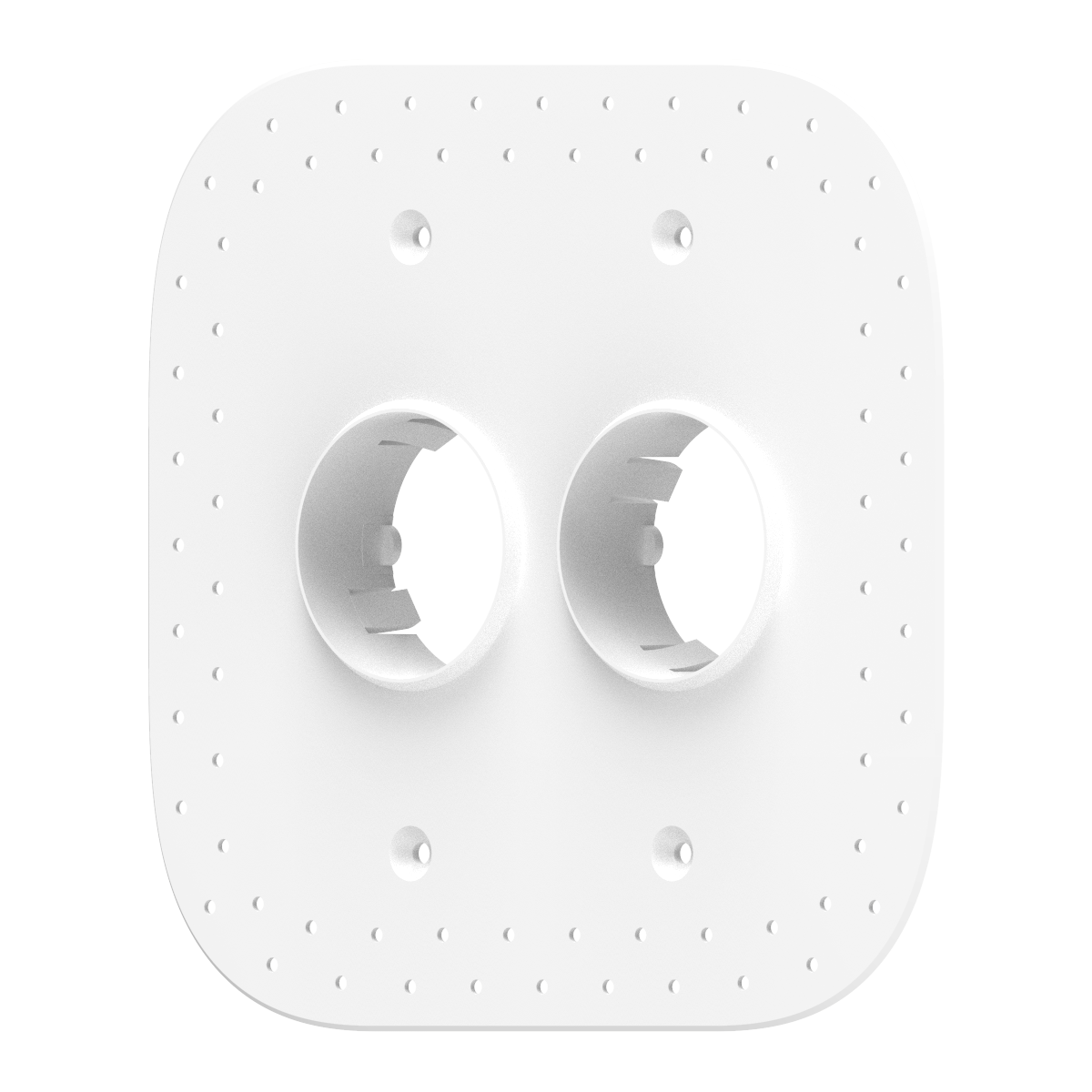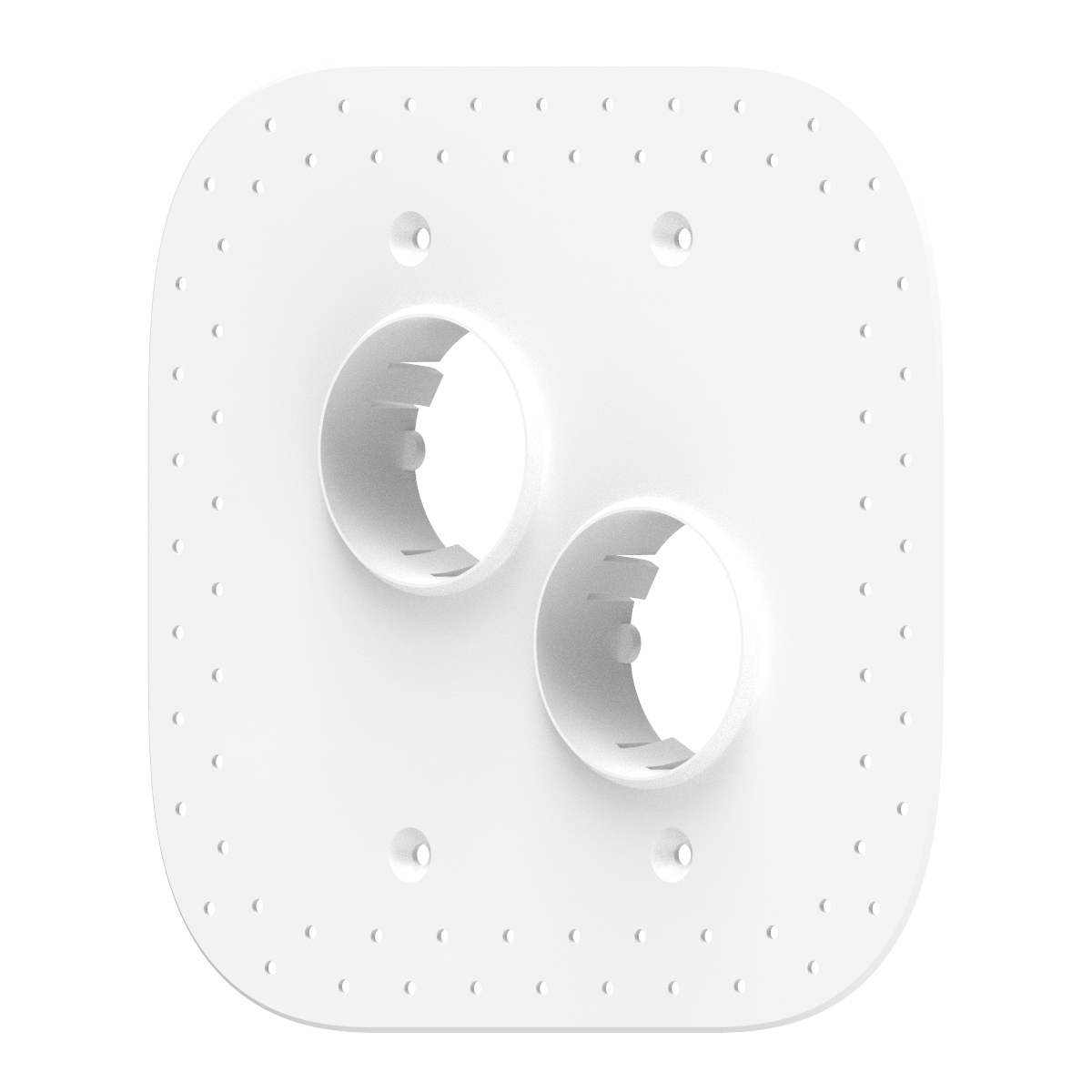 The drywall mounting plate is designed to “mud” directly into drywall without a visible cover plate or trim. The mounting plate accepts any of the 22 System Ø35mm devices.
